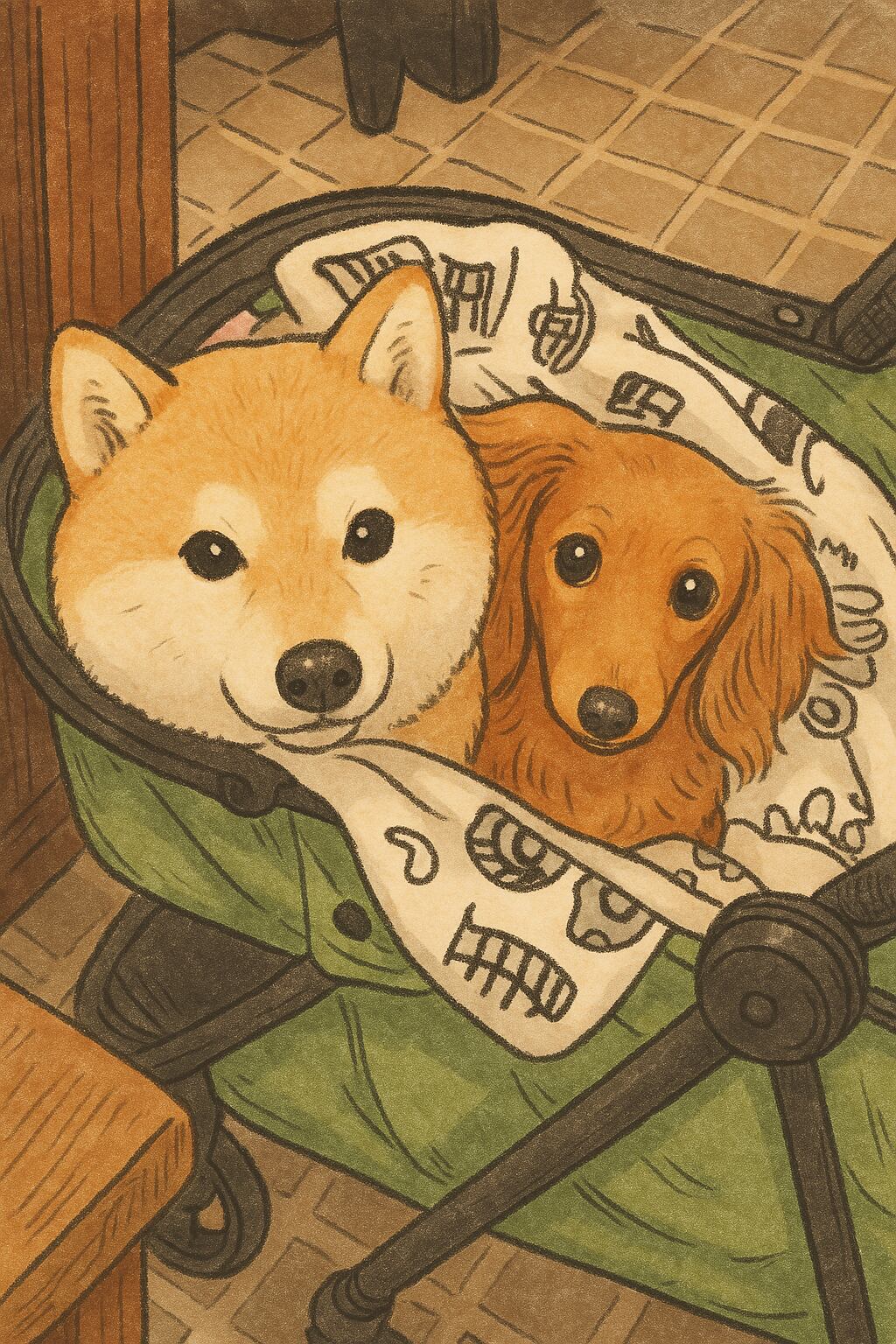 ペットの似顔絵、ペットと一緒に写った似顔絵